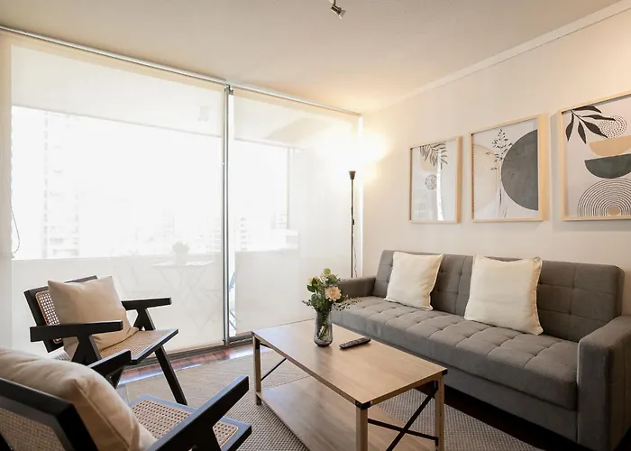 O Modern Design Apt Cozy 1B1B Santiago de 30 m² também está localizado a apenas 8 minutos a pé do Parque Araucano. O Wi-Fi e parque de estacionamento privado gratuito são fornecidos para o maior conforto dos hóspedes.